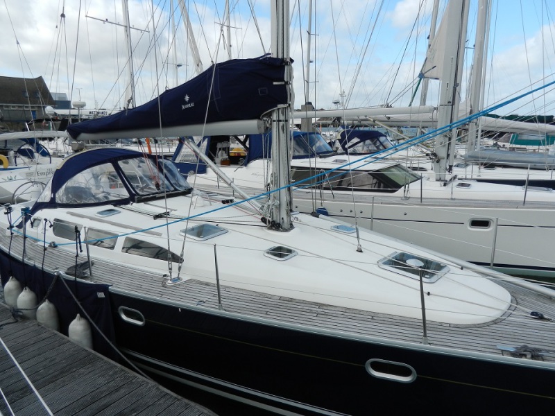 This Jeanneau Sun Odyssey 40.3 helped by her navy blue hull, looks stunning. She has an excellent inventory which includes a 54HP Yanmar, spacious saloon, 3 cabins, 2 heads, teak decks, 2010 North mainsail and furling genoa. Single line reefing with lazy bag, electric winch on the coachroof and much more! She has been well looked after and is certainly worth a look!