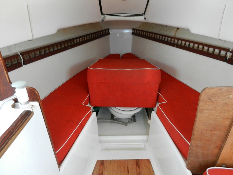 Two single berths in the forward cabin. The SL 400 marine toilet is situated under the berths amidships.