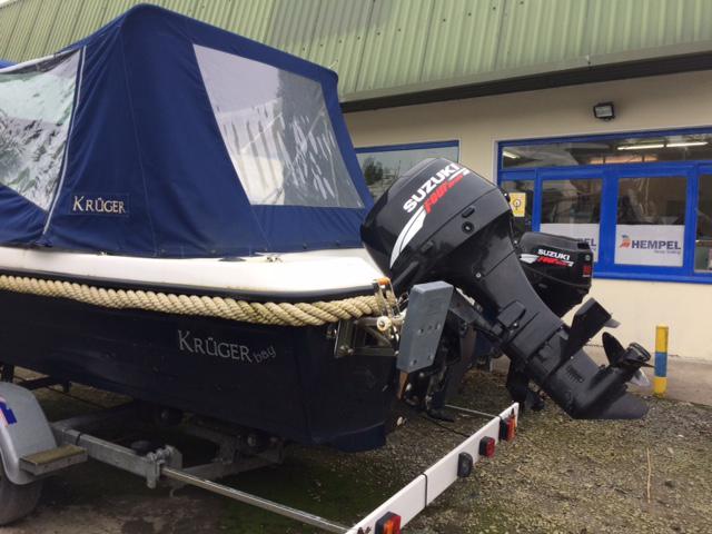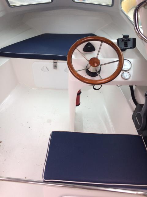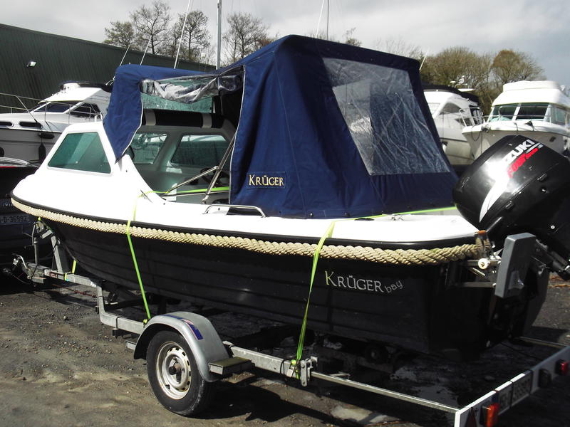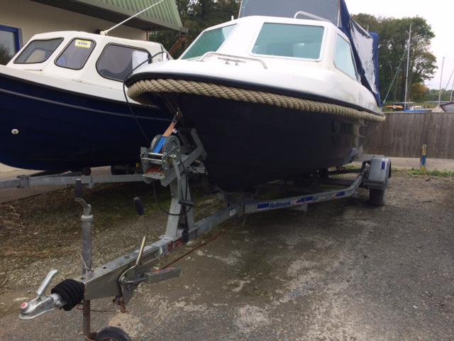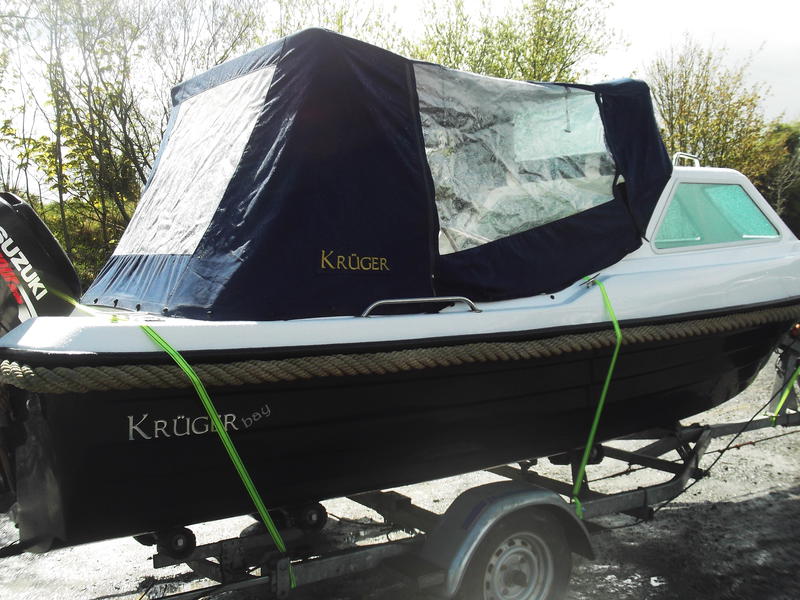 Kruger Beta II - a rough weather day fishing boat suitable for coastal or lake/river use with generous room for 5 people, ample storage & GRP cuddy cabin.