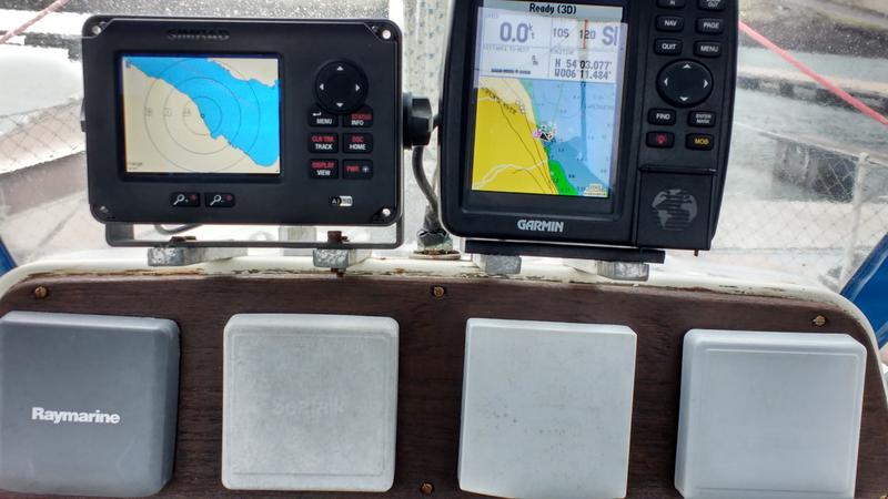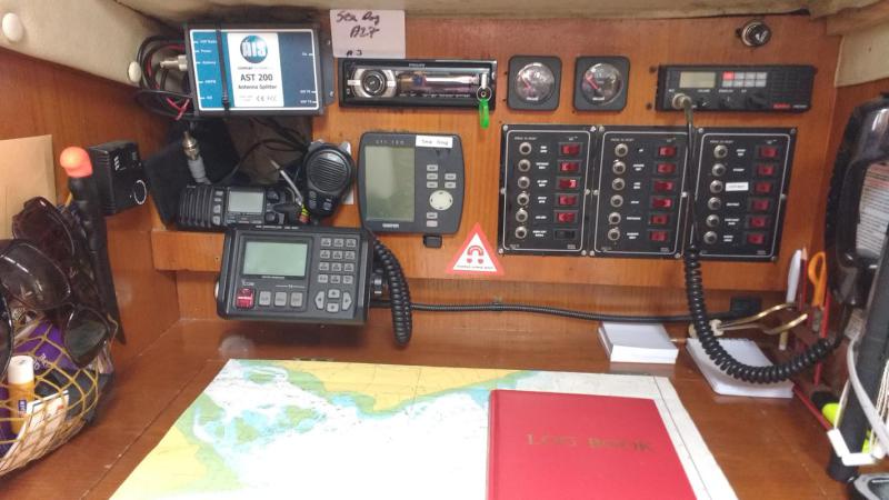 Garmin Chart plotter, Simrad AIS, on deck,Separate Garmin GPS in cabin.