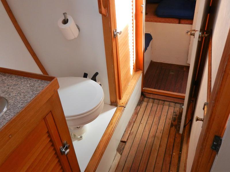 Heads to starboard (opposite the galley)