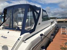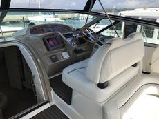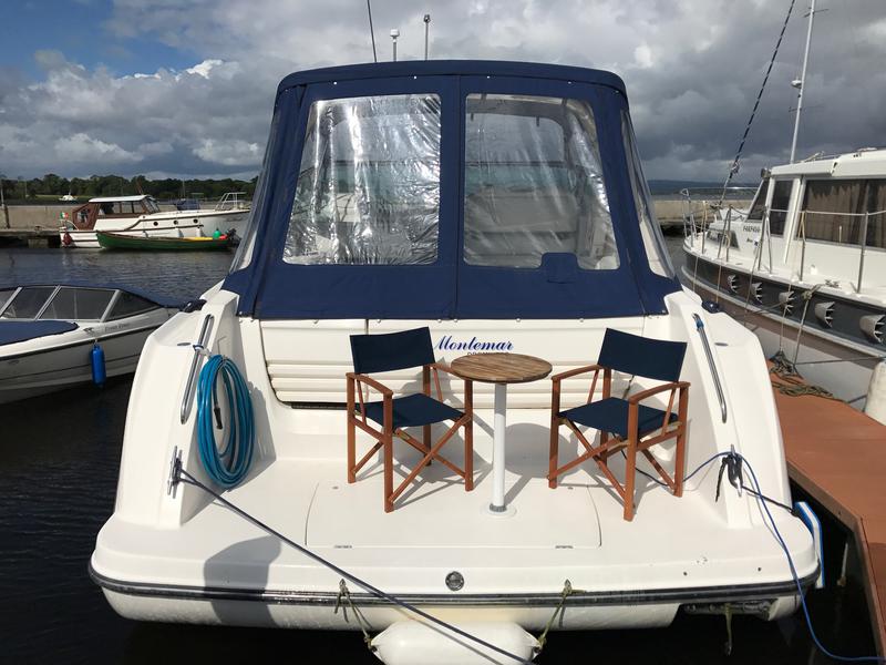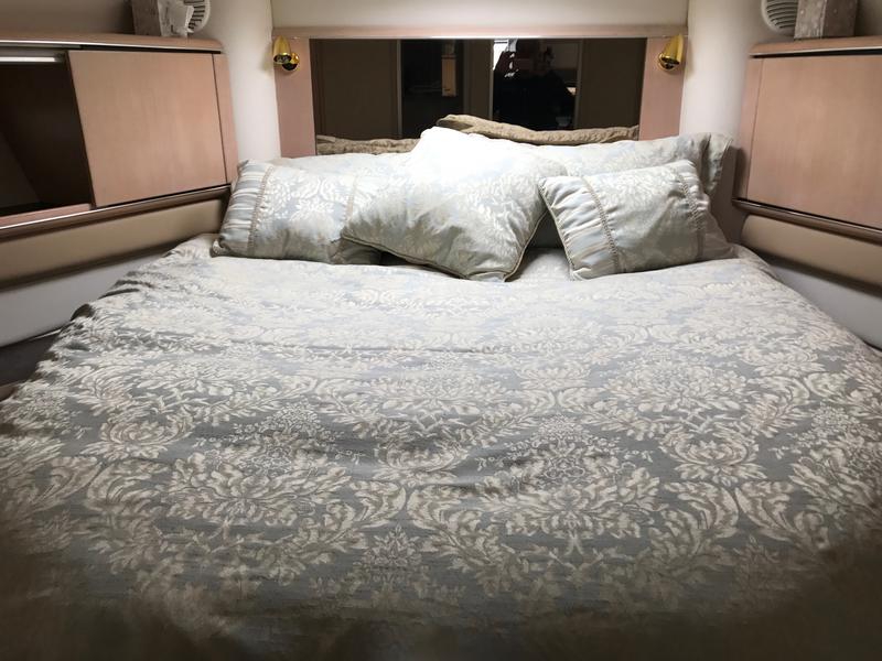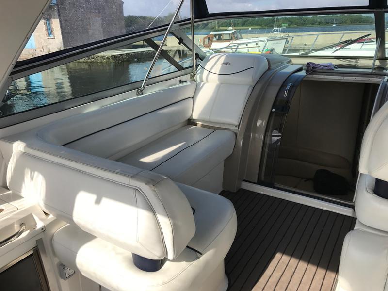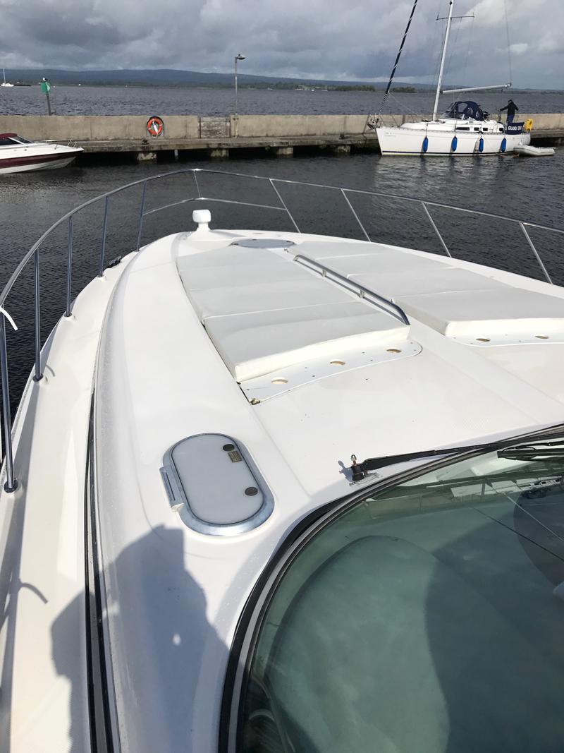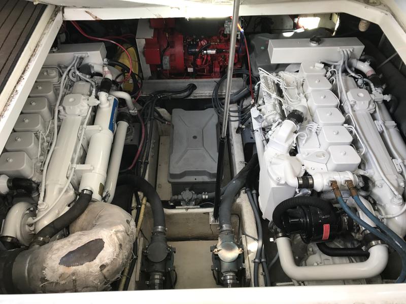 A beautifully presented 42ft Bayliner Avanti Express Cruiser with comfortable sleeping accommodation for 6 to 8 people. Propelled by twin 370 h.p. Cummins Marine Diesel engines on shafts with approx 800 hrs which have been well cared for. A Westerbeke 8 Kw diesel generator completes the engine room.