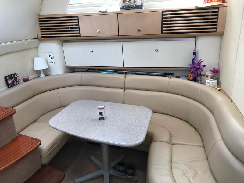 Four steps lead down to the salon area with 7 ft headroom and butter soft leather sofa which converts to a double berth. A double berth cabin is accessed from salon which is sectioned off offering great privacy.