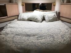 The master cabin is located forward with a king size island bed and generous wardrobe storage on either side.