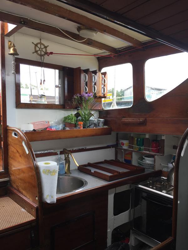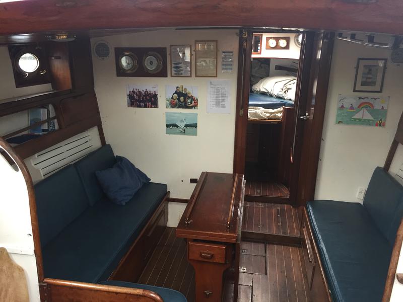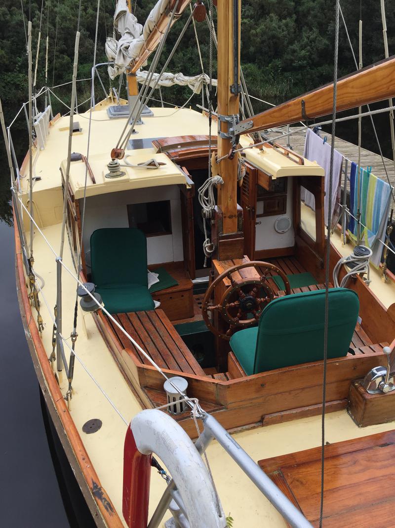 Her unique "built-up topsides" design gives her a much larger cabin space and deck area than one would normally expect in a 38 ft classic cruising yacht.